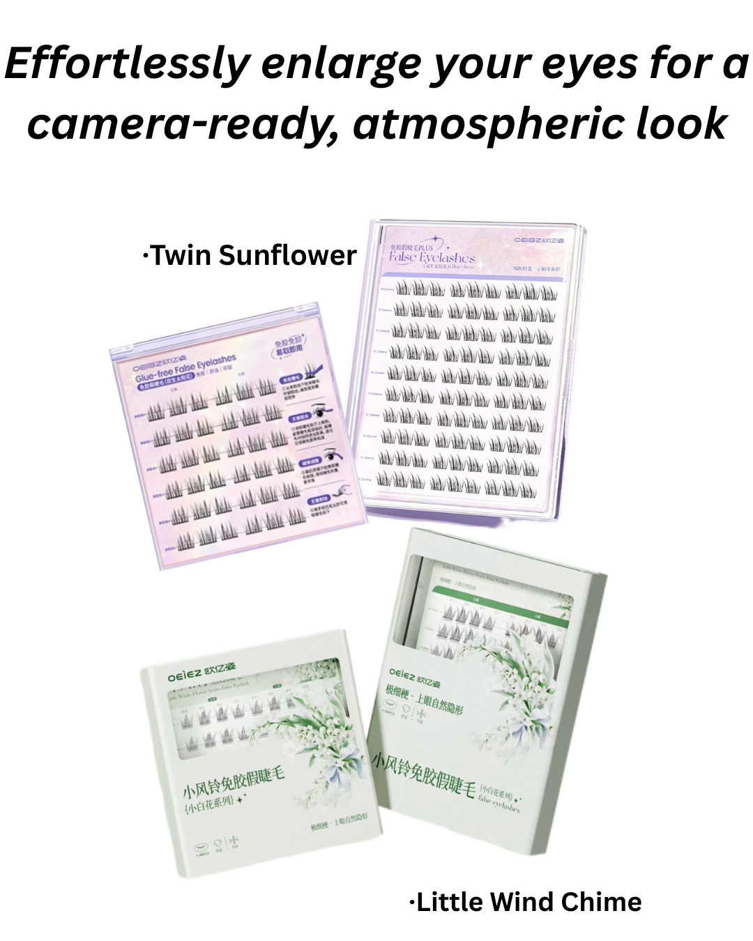 OEIEZ Little Wind Chime & Twin Sunflower Glue-Free False Eyelashes 1box 欧亿姿小风铃&双生花免胶假睫毛